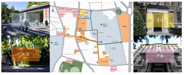 本案为研究型城市设计课题,要求学生通过详细的现场认知与调研工作,针对南京城市烟火圈的案例进行分析与研究。通过多维度的参与性工作,回溯城市烟火圈的历史发展过程及其构成原理,分析它们在社区环境中的影响与作用,提炼它们的构造原则与方法,同时为将来可能的优化提升提出建设性的观点。