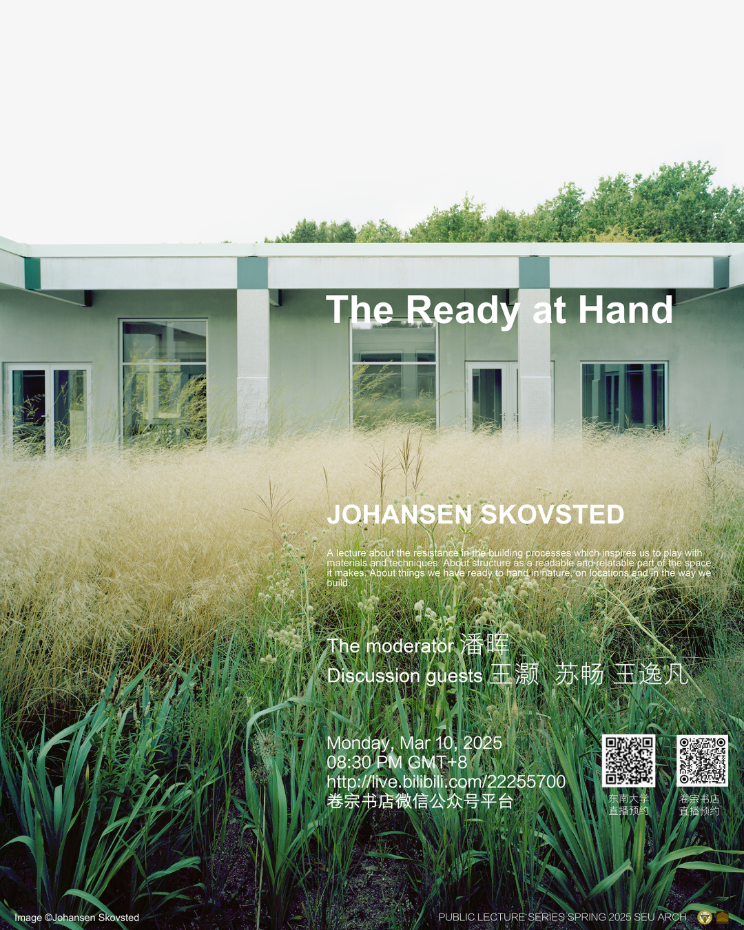 Johansen Skovsted Arkitekter是一家位于哥本哈根的建筑事务所,由 Søren Johansen和 Sebastian Skovsted于 2014年创建。两人都曾就读于丹麦皇家学院,并在 2015-2021年间任教于该学院。他们曾在苏黎世联邦理工学院、巴比肯艺术中心、伦敦城市大学、波尔图巴卡漫画 、奥斯陆建筑与设计学院、新南威尔士大学和悉尼歌剧院等机构讲学。2019年,他们在波尔图学院开设了一个工作室。