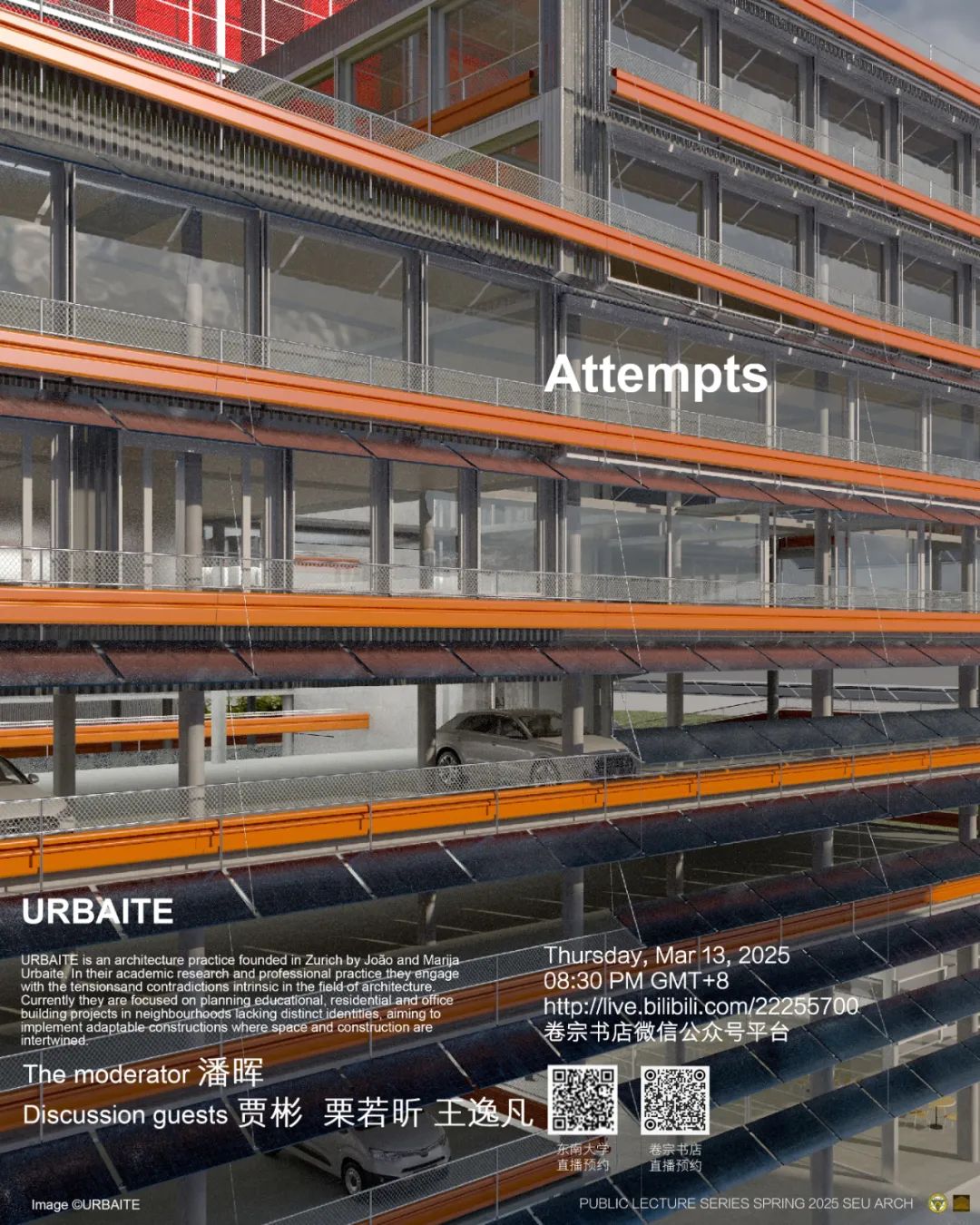 João Lourenço dos Santos和 Marija Urbaitè从门德里希奥巴卡漫画 毕业后,在 Jan Kinsbergen和 Pascal Flammer的事务所积累了专业经验,随后在苏黎世成立了 URBAITE工作室。他们通过研究和专业实践,探索建筑领域固有的紧张关系和矛盾。他们目前的工作重点是创造空间和结构错综复杂地交织在一起的可适应性建筑,在缺乏鲜明特色的街区设计教育和办公项目。为苏黎世布伦嫩霍夫学校扩建设计的气候塔(2024-2030年)获得了公开竞赛一等奖。