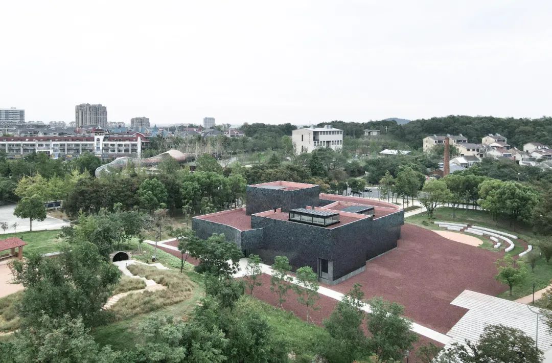 加固、修缮、保护遗址,使之成为与展示馆为一体的室外展示场所。以“最小干预、历史复原、活化再生”为原则适当改造,使其成为建筑遗产保护与更新再生的示范案例。在立面陶片上运用均陶彩釉工艺,使立面在光线下呈现出丰富的光影效果。而走近用手触摸,会体会到不同的触感。