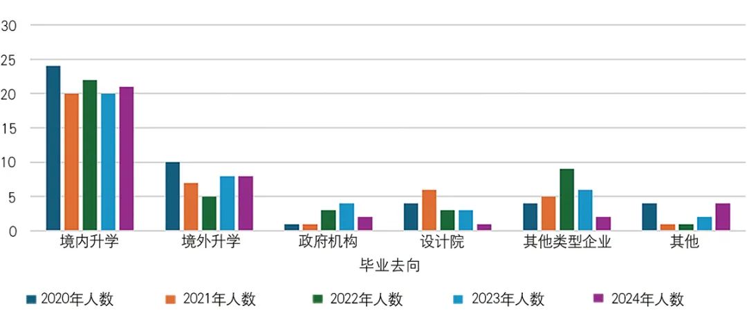 Fig.4 Statistics on post-graduation destinations of Urban Planning Major students at Southeast University in the past five years
