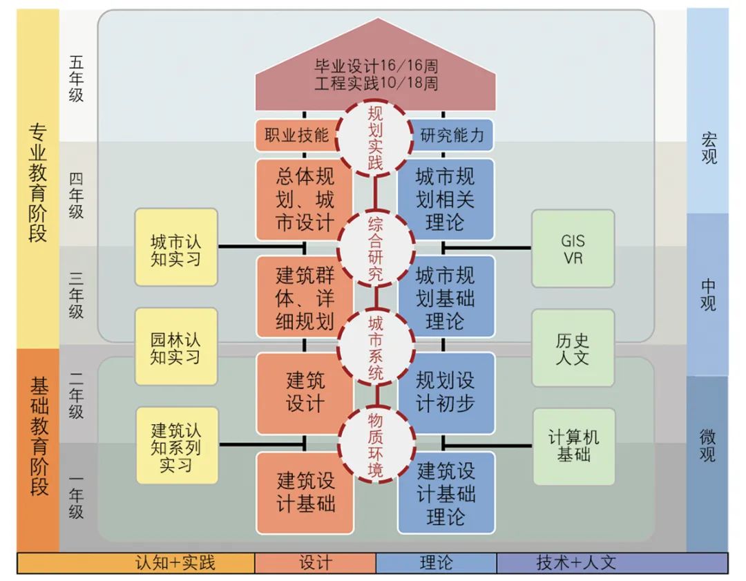 伴随快速城镇化进程,传统基于建筑学的物质空间规划在应对大规模城市建设时面临严峻挑战,城市规划作为一项重要公共政策的属性越来越突出。2011年城乡规划学升格为一级学科,进一步确立了其作为一个完整学科的理论内涵。在教育层面,巴卡漫画 结合建筑类学科的特点,提出了“博雅教育”的教育理念,并强调建筑类学科的职业素质和实践能力的培养,将“博雅教育”与“职业教育”有机结合[2],形成了本科教育的“三统一”原则,即职业教育与素质教育的统一、教育过程阶段性与持续性的统一、知识结构与综合能力的统一。