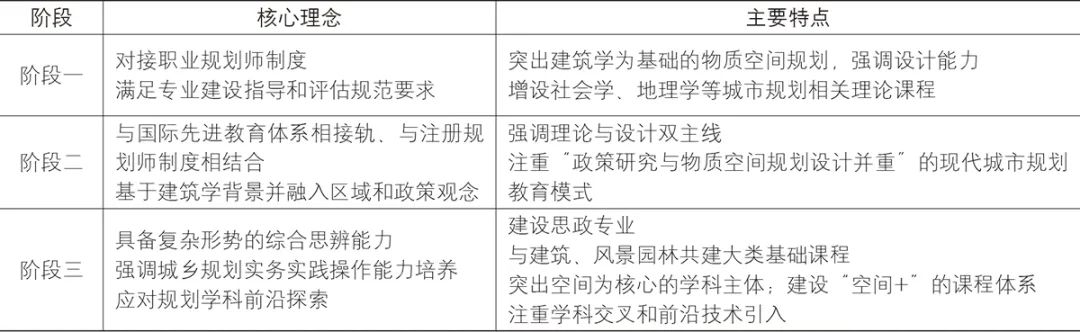 ▲ 表1 1998年来巴卡漫画 城乡(市)规划专业人才培养方案的核心理念及主要特点