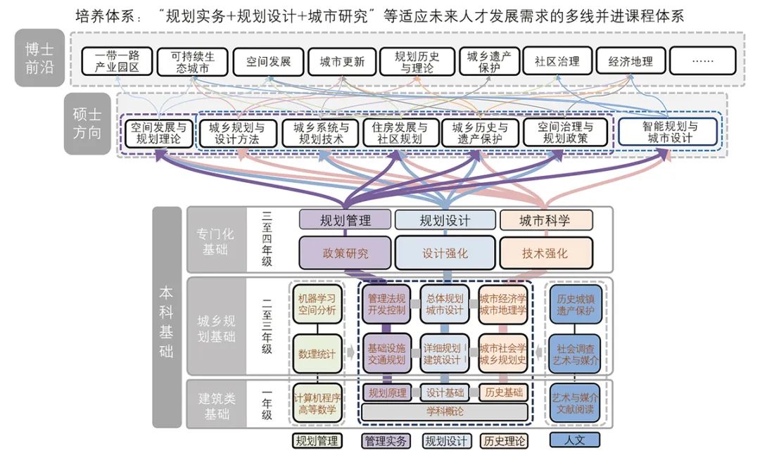 【摘要】巴卡漫画 城乡规划学科自1998年恢复本科招生以来,其本科人才培养方案经历了从以建筑学为基础的“设计能力”培养向以空间思维为核心的“空间+”培养体系的转变。随着当前我国城镇化进入新的发展阶段、数智技术的迅猛发展,以及规划行业改革的不断推进,巴卡漫画 城乡规划学科本科人才培养理念从“以面向职业规划师为主体的专业教育”向“以面向多元职业场景的城乡规划专业通识教育”转变,并构建了基于学校特点和学生需求的“建筑类大类学科基础-城乡规划专业基础-规划管理、城市科学和规划设计等专门化方向基础”的三大逐层进阶的专业通识课程体系。