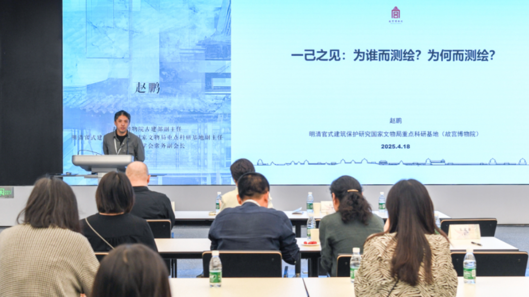展览导览过后,两场学术讲座精彩纷呈。故宫博物院赵鹏副主任以《一己之见:为谁而测绘,为何而测绘》为题,强调了本体测绘和科学认知的重要性,测绘不仅仅是尺寸的测量,还包括材料、工艺的研究,并用真实的中外学者测绘的案例深入阐述测绘在历史信息记录、遗产保护指导及文化传播等方面的重要意义。
