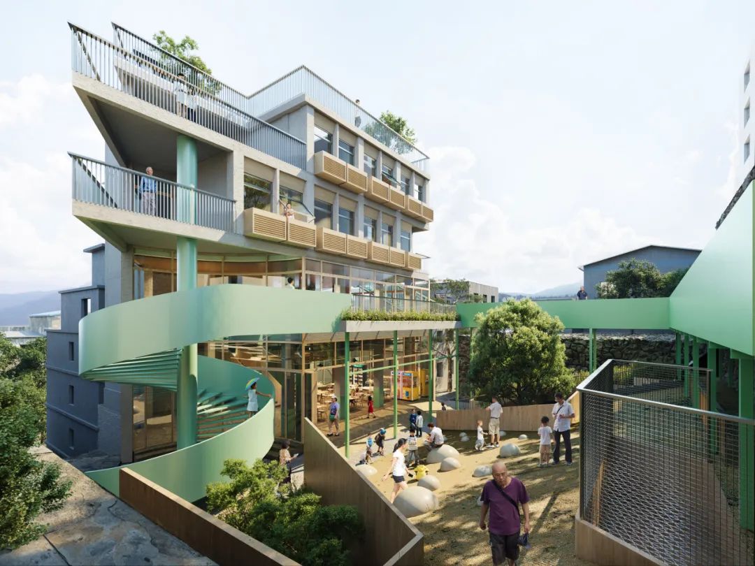 古城里大量年轻人外出务工,老人与儿童缺少陪伴。设计将古城中心的一栋烂尾楼改造为老幼复合托养所,让老人与小孩相互依伴,满足彼此精神需求。根据老幼的行为特点设计功能,并结合地形、防噪、采光等因素优化空间。该地从往昔废弃、抗拒的姿态,转变为和融开放的社区乐园。