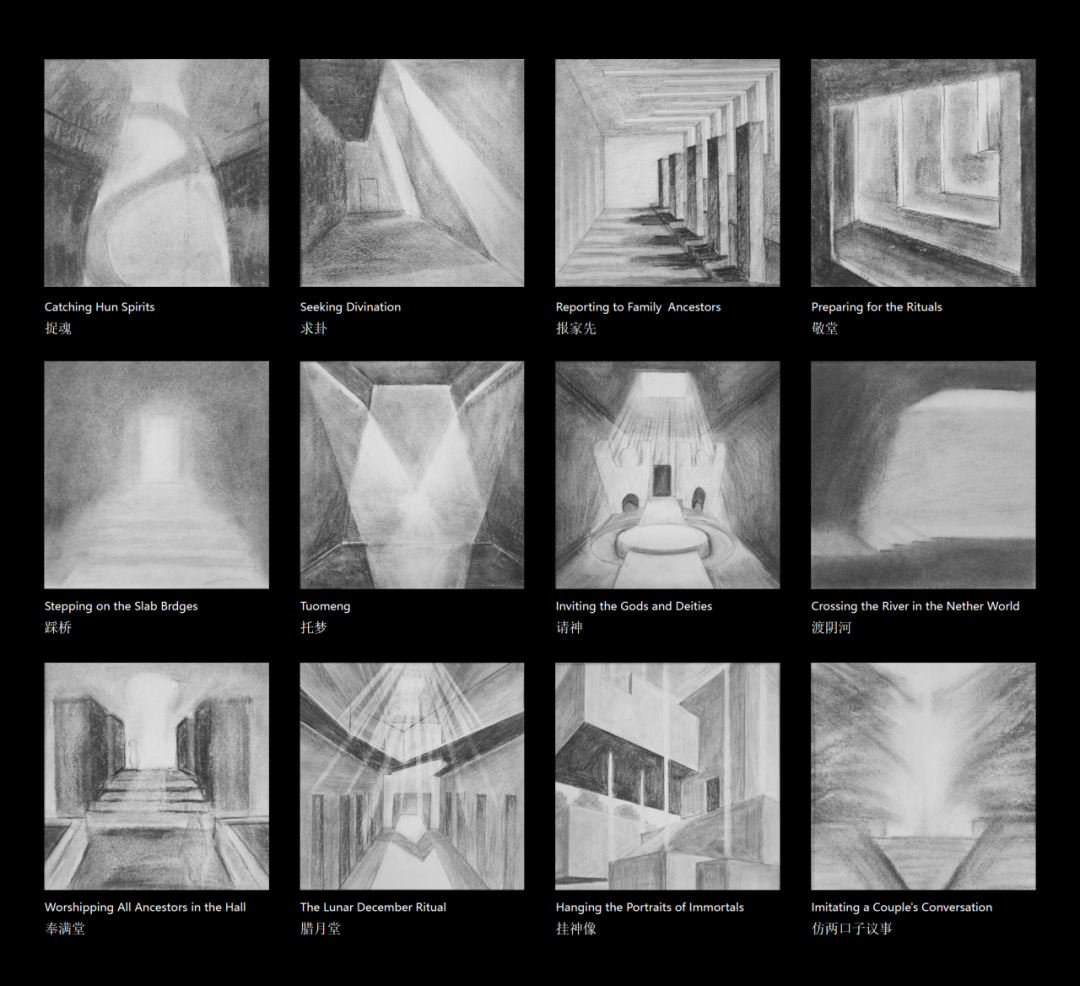 恩施第一监狱位于河流交汇处的岸边高地,废弃的建筑成为一处遗置的废墟。更新设计完整保存其外部形态和废墟气质,将其内部改造成为固定展演土家族民族史诗的沉浸式剧场。两个方案分别选取长篇民族史诗《梯玛歌》和创世传说《摆手歌》为蓝本,将剧情结构转译为空间场景,形成阴阳交织、生死轮回的情节空间,最终实现从监狱到剧场、从戏剧到建筑的转译。两个方案将交由当地土家族社区选择实施。