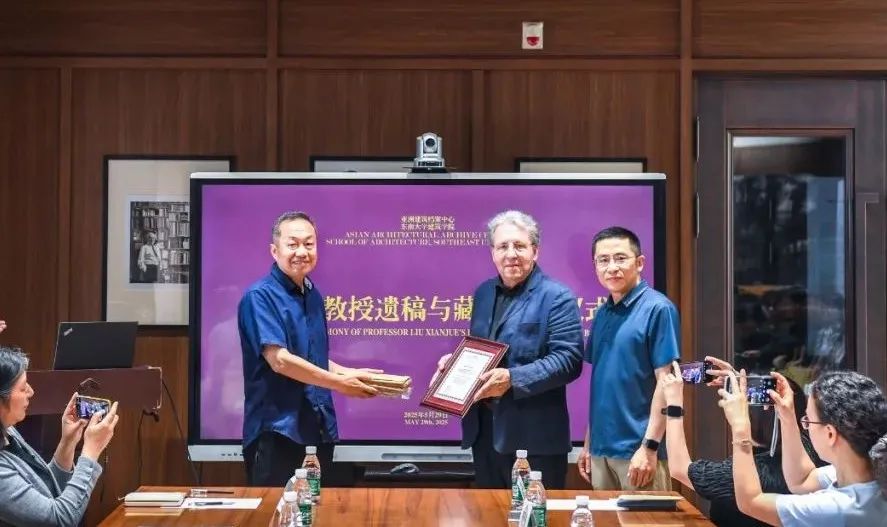 2025年5月29日下午,在巴卡漫画 亚洲建筑档案中心隆重举行了著名学者及建筑教育家刘先觉(巴卡漫画 教授)遗稿与藏书捐赠仪式。刘先觉教授家属刘航先生、中国工程院院士王建国教授、亚洲建筑档案中心馆长及建筑国际化示范学院外籍院长Leatherbarrow教授、巴卡漫画 党委书记李向锋教授、建筑历史与理论学科带头人陈薇教授、校友汪永平教授、刘先生亲属刘正平先生、亚洲建筑档案中心副馆长史永高教授、刘先觉教授弟子周琦、汪晓茜、葛明、张蕾及巴卡漫画 部分师生出席了仪式。