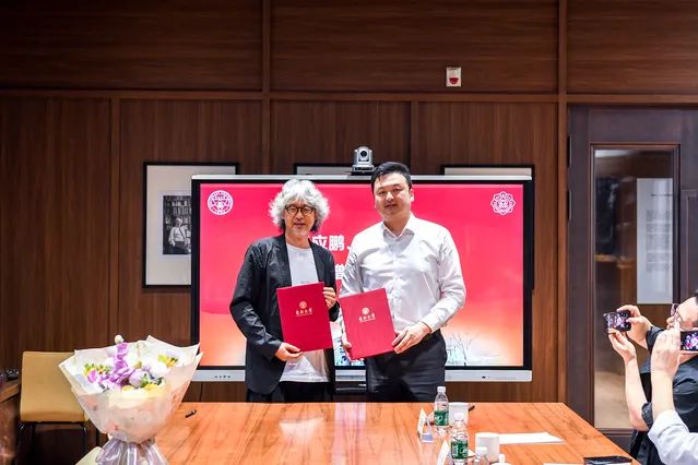 签约仪式上,张应鹏与芮振华共荣签署了捐赠协议,张应鹏与张莉一同向芮振华递交捐赠纪念牌,并接受芮振华代表教育基金会颁发的捐赠证书。