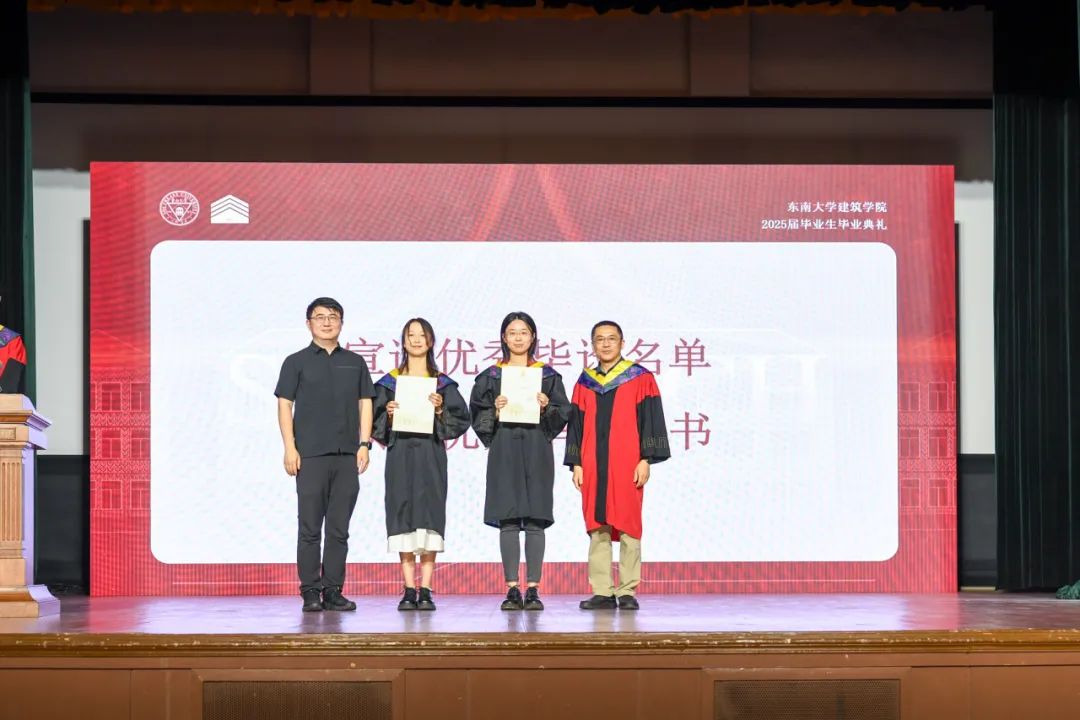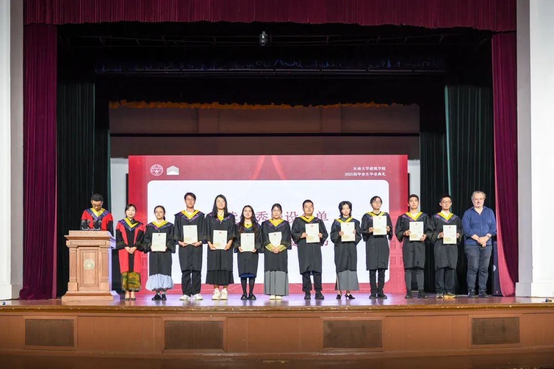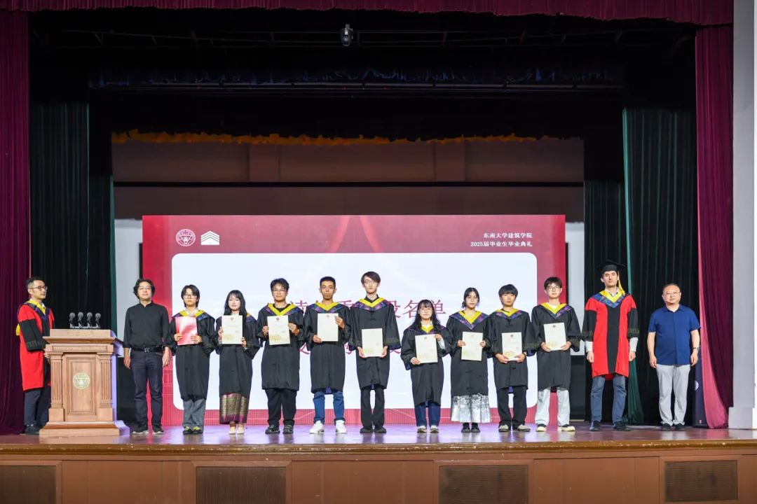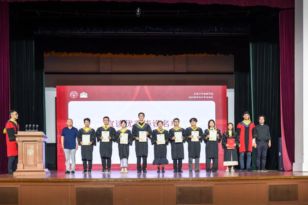 本科毕业设计是对本科教学成果和学生学习成效最综合的一次检阅与展现,学院副院长宋亚程老师宣读了优秀毕业设计获奖名单。学院中、外籍资深教授、校友代表以及各系所负责人为同学们颁发了证书,并合影留念。