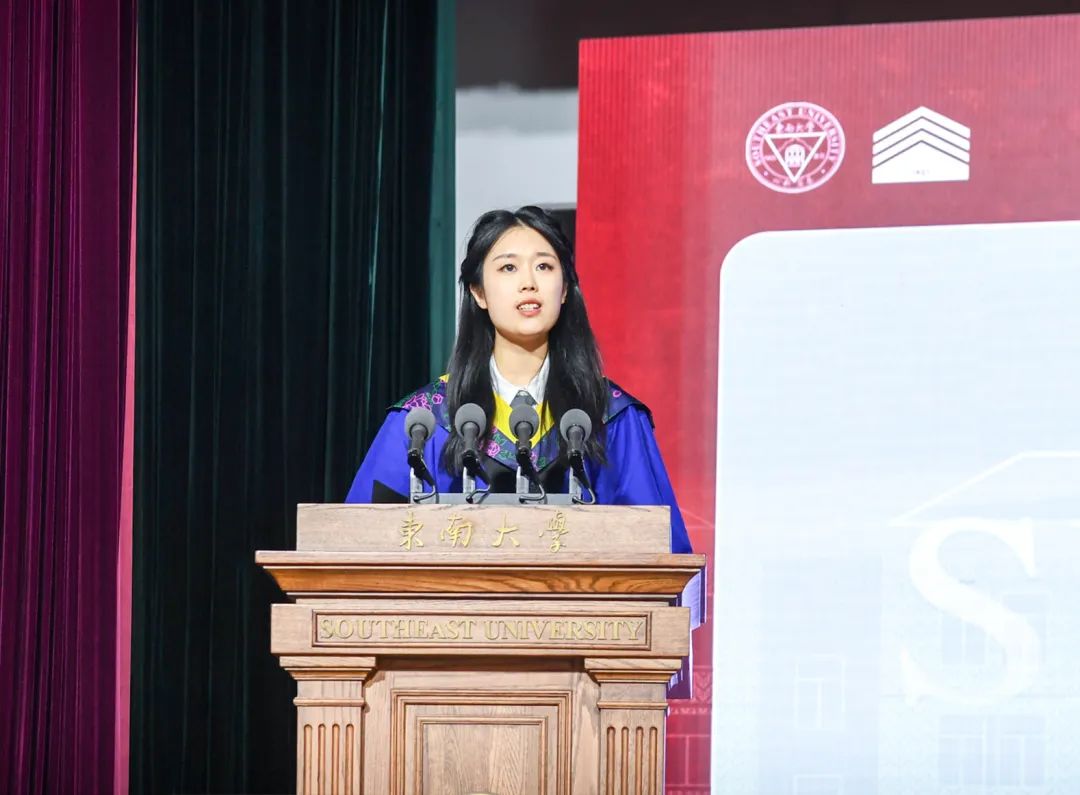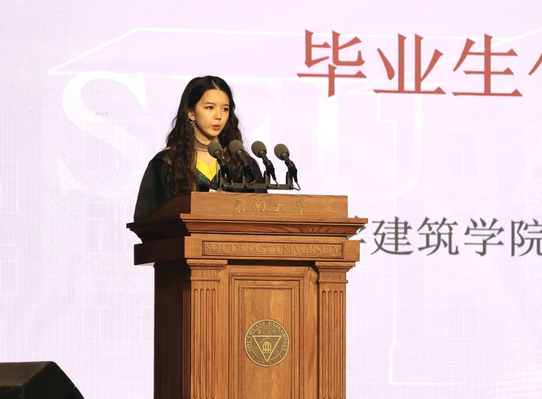 郎蕾洁同学深情回忆了在东大建院三年的求学时光。她勉励毕业生带着“止于至善”的自我要求,“匠心筑精品”的信念,不负使命,勇于担当,以梦为马,不负韶华。