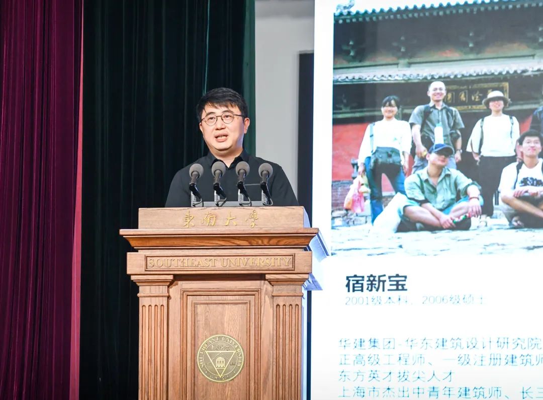 华建集团华东建筑设计研究院副总经理宿新宝先生作为校友代表,向师弟师妹们送上了真挚祝福和珍贵寄语。他嘱托大家树立和坚持正确的价值观,保持对新鲜事物的好奇心和敏感度,发挥建筑学子的创新思维,为大家鼓足了前行的信心和勇气。