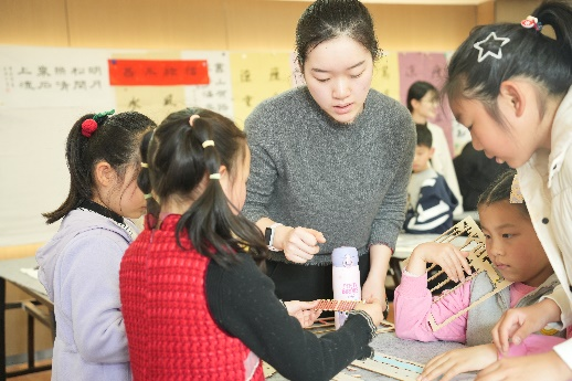 "榫卯结构体现着中华民族'和而不同'的哲学智慧..."第六党支部党员周星羽立足专业特色,通过3D模型拆解、文物修缮案例,向20位社区青少年生动诠释木构建筑的结构智慧与文化基因。在现场,除了周星羽同志以外,来自第四党支部的陈云娇、嵇禹两位讲师,分别为孩子们讲解古建筑基本知识,展示斗拱之美。现场还设置"古建知识擂台赛",以"木结构建筑构件识别"古今木构异同"等趣味问答,激发孩子们对传统文化的探索热情。