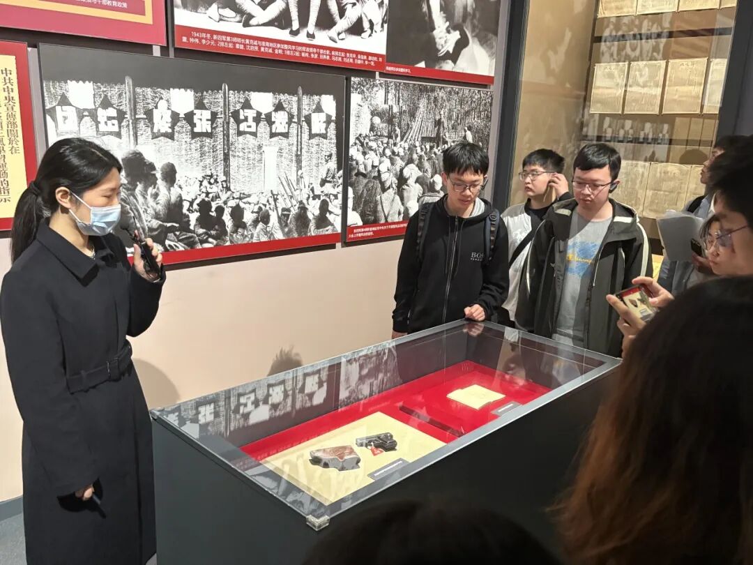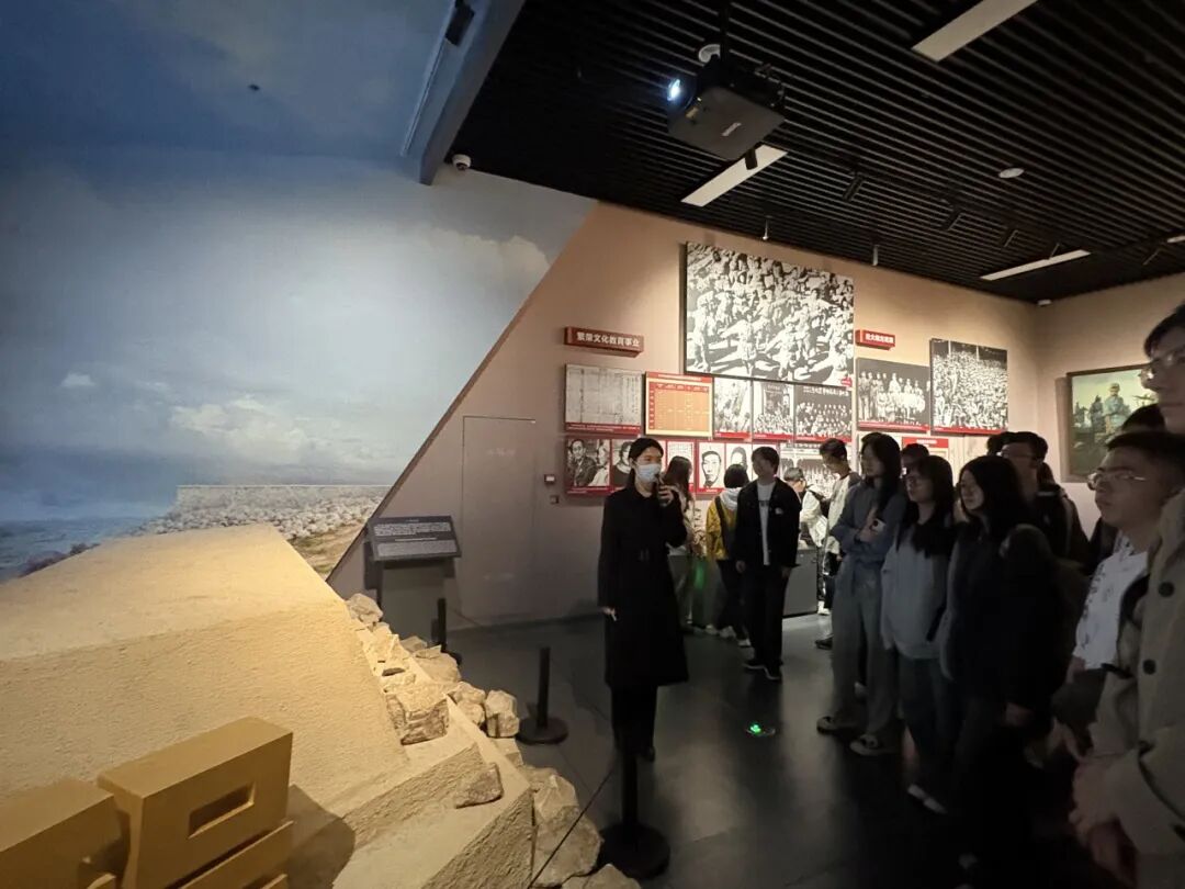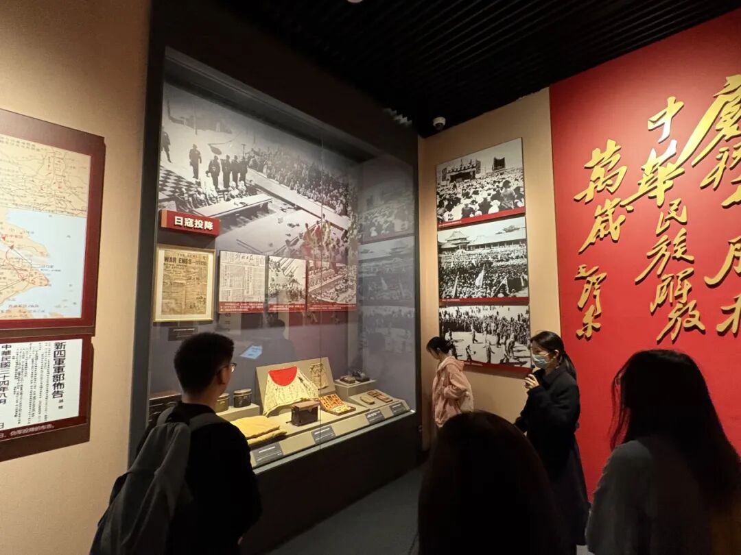 在新四军纪念馆,同学们跟随讲解员步入展厅,一幅幅历史照片、一件件珍贵文物、一幕幕复原场景,将大家的思绪拉回到那段烽火连天的岁月。1941年皖南事变后,新四军在盐城重建军部,成为华中抗战的中流砥柱。馆内以时间为序,以新四军全面抗战为经、以新四军各师和各个抗日根据地为纬,包括“进军华中,开辟敌后抗日战场”、“重建军部,全面加强部队建设”、“坚持抗战,纵横驰骋江淮河汊”、“反攻作战,夺取抗战最后胜利”等部分,生动展现了新四军将士在极端艰苦的条件下坚持敌后抗战的壮烈历程。