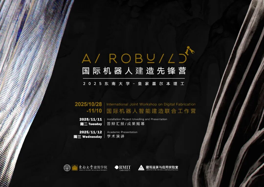 AIROBUILD是由AI(人工智能)、ROBOT(机器人)、BUILD(建造)组合而成的合成词。AIROBUILD国际机器人建造先锋营由SEU、RMIT共同发起。旨在以设计与建造实践为核心任务,探索人工智能与智能建造在建筑学中的应用,推动国际学术交流与合作。同时,通过举办国际研讨会,为全球学者搭建开放的交流平台,展示学科前沿成果。