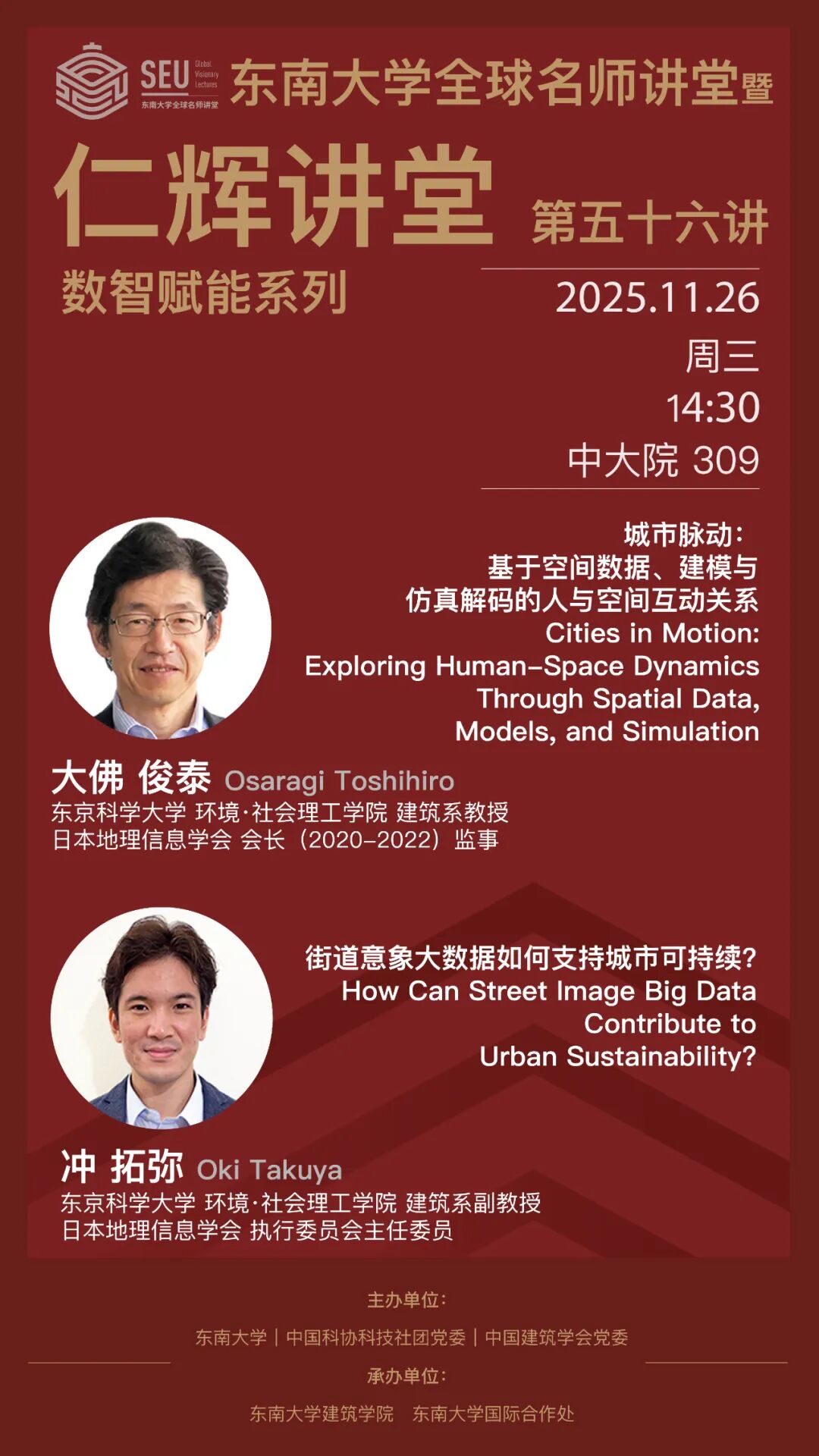 The upcoming lecture will feature Osaragi Toshihiro, professor and PhD Supervisor, School of Environment and Society, Institute of Science Tokyo. And OkiTakuya, associate professor and PhD Supervisor, School of Environment and Society, Institute of Science Tokyo. The lecture will be held both at the venue and via livestream. The reservation link can be found at the end of the article.