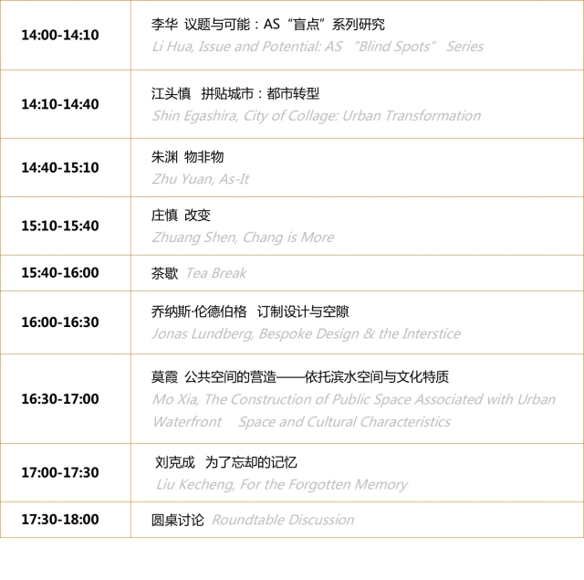 副教授 Zhu Yuan, Professor, Southeast University 庄慎 阿科米星建筑设计事务所 Zhuang Shen, Atelier Archmixing 研讨嘉宾 张桦 沈迪 高文艳 杨明 葛明 王为
