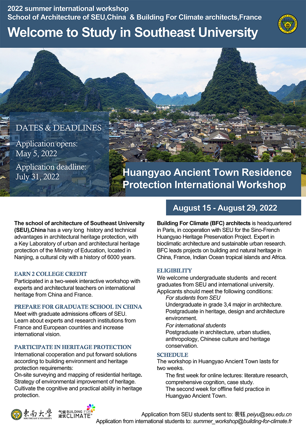 SEU International Summer School 2022 | Sino-French Joint Guangxi Huangyao Ancient Town Ming and Qing Dynasty BuildingHeritage Protection International Workshop