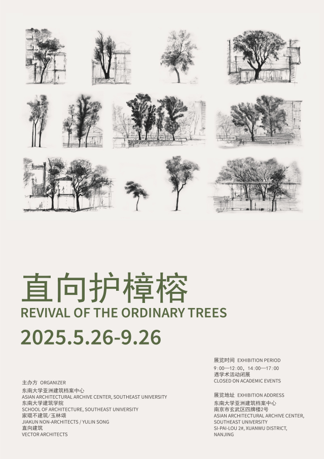 The exhibition "Revival of the Ordinary Trees" will officially be open to the public at the Asian Architectural Archive Center, Southeast University on May 26, 2025. This exhibition is jointly organized by the Asian Architectural Archive Center, and the School of Architecture of Southeast University, Jiakun Non-Architects / Yulin Song, and Vector Architects. The exhibition is scheduled to remain open until September 26.
