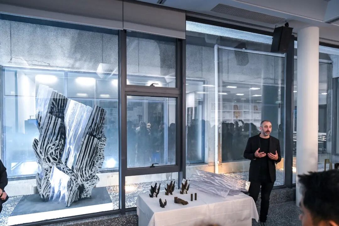 随后本次 AIROBUILD 工作营最终建成的砂型 × 热塑颗粒复合构造装置在巴卡漫画 前工院中庭会议室庭院正式揭幕。来自SEU与RMIT的教师与学生共同见证了装置的亮相,标志着两校在生成式设计、材料实验与机器人建造协同研究方面的阶段性成果落地。