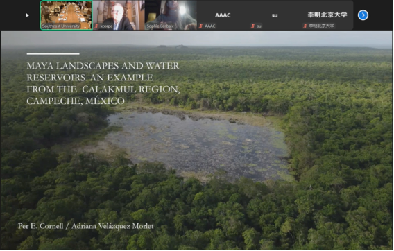 随后的三场报告以线上形式展开。第一场在线演讲由瑞典哥德堡大学Per Cornell教授主讲,题为《玛雅景观与水窖系统:墨西哥坎佩切州卡拉穆尔的实例研究》,该研究由Per Cornell教授和墨西哥国家人类学与历史研究所坎佩切州(INAH)办公室主任Adriana Velázquez Morlet合作完成。报告聚焦卡拉穆尔地区的古玛雅水资源管理方式,揭示了雨水收集池和运河系统如何在严峻环境中支撑起密集的人口,并进一步探讨了为适应当代可持续需求而修复这些古老系统的现代实践。